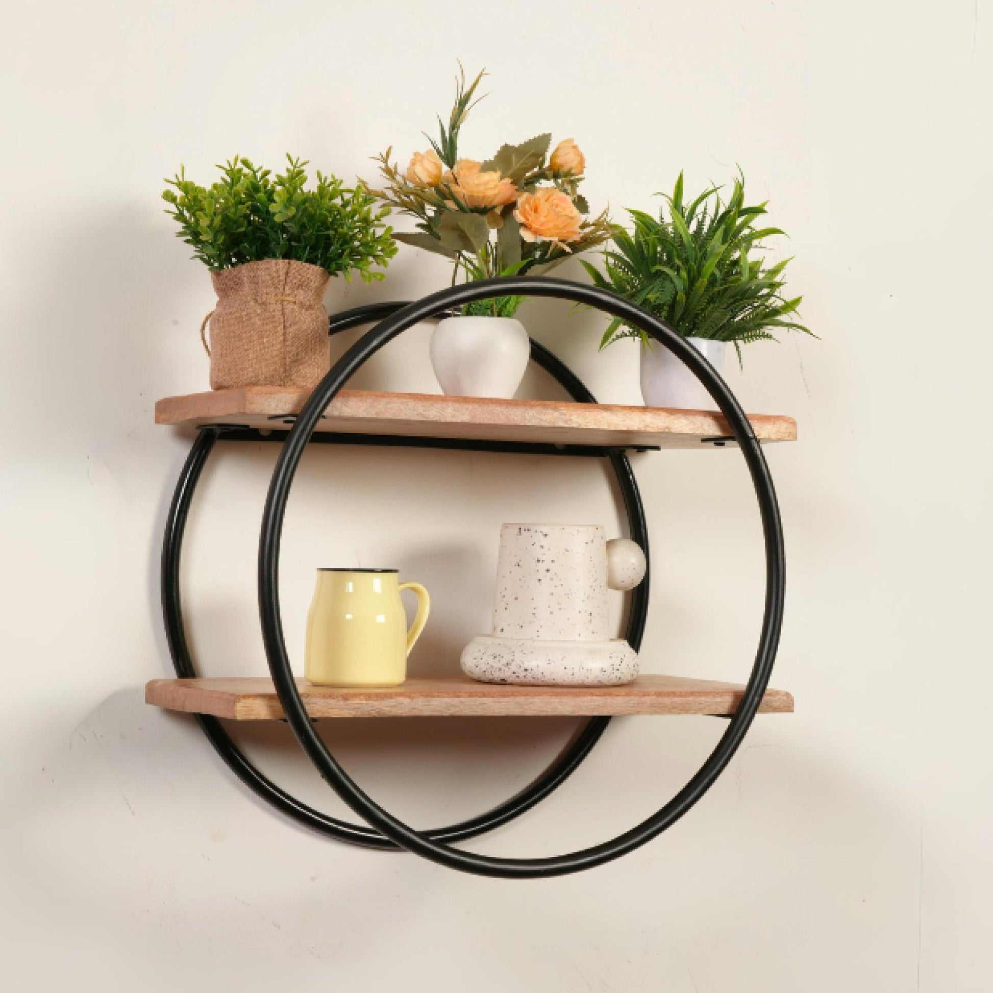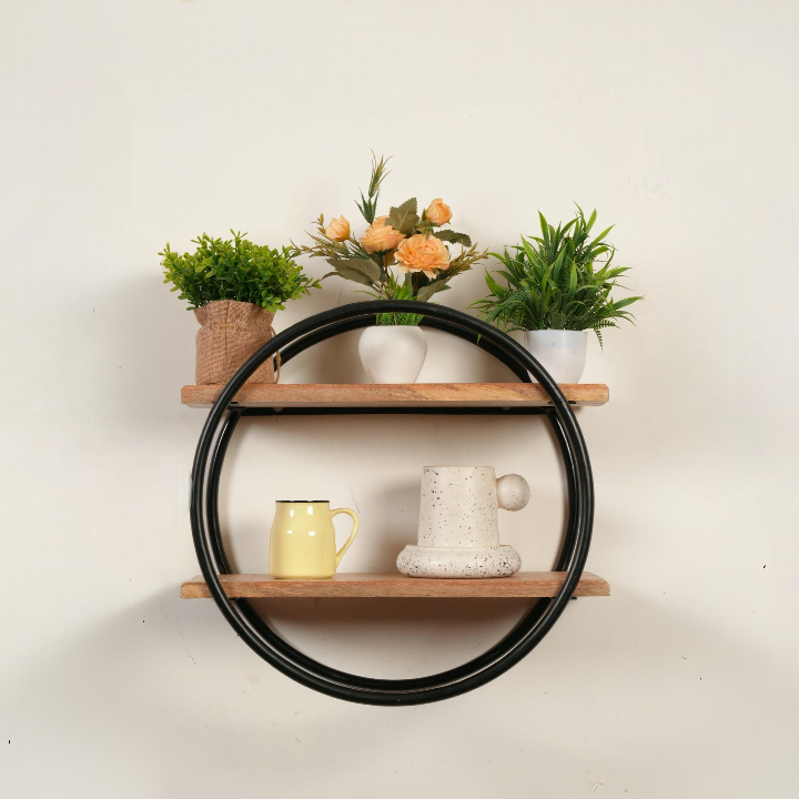 Bring harmony and warmth into your space with the Natural Aura Display Rack by Ikari Homes. Thoughtfully crafted with earthy tones and an airy design, this 2-tier circular wall-mounted rack combines bohemian charm with functional storage.