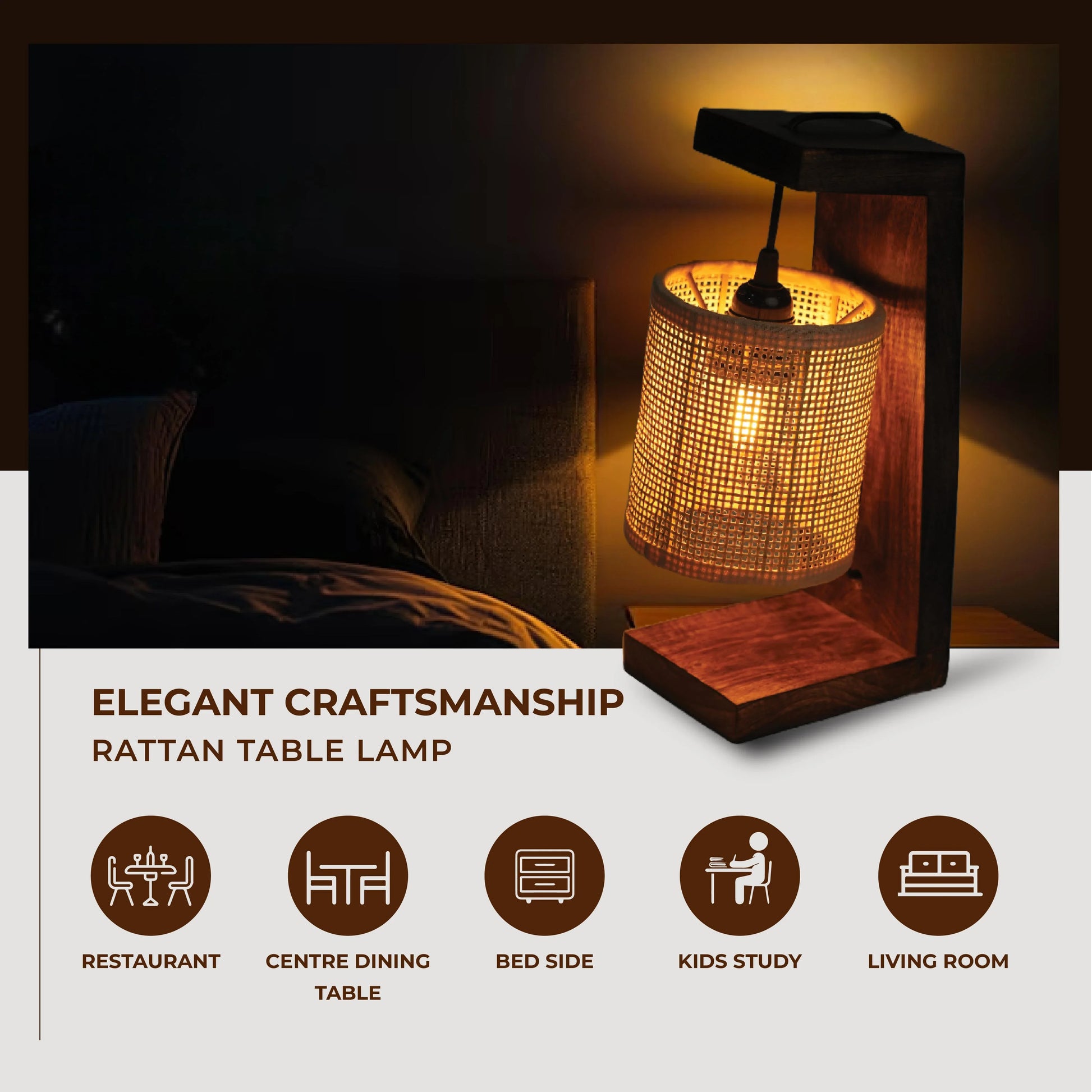 Redefine your space with this handcrafted square table lamp that blends raw, organic textures with warm, inviting light. The square-shaped shade, woven from natural rattan, diffuses a soft glow that adds a soothing charm to any corner. Set on a solid mango wood base, the lamp’s clean lines and rustic materials make it a stunning accent piece for both modern and boho-inspired interiors. Whether placed on your bedside, console, or study desk, it effortlessly combines form and function—offering a calm, ambient light for your everyday moments.