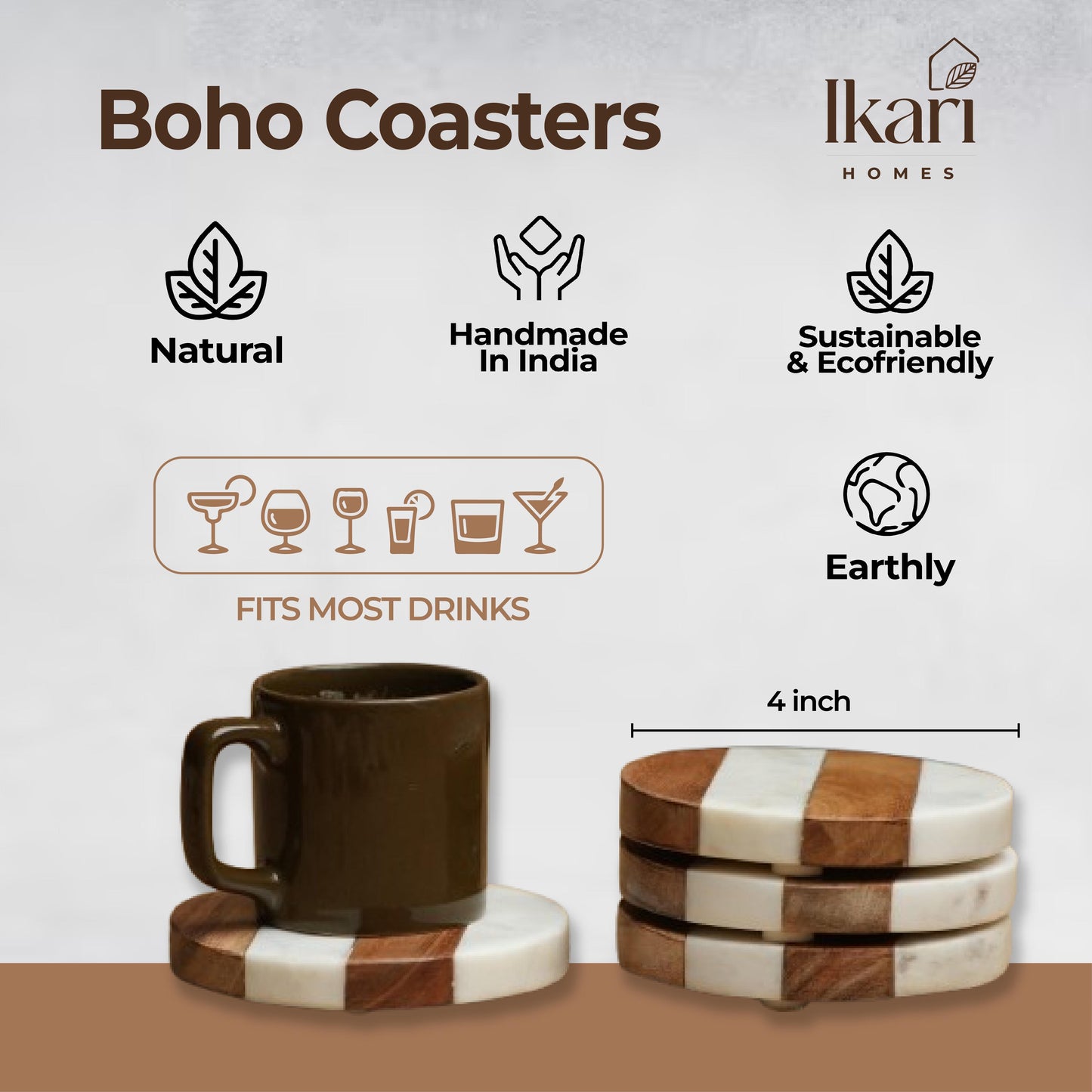 Boho Terra Duo Round Marble & Wood Coasters, Set of 4