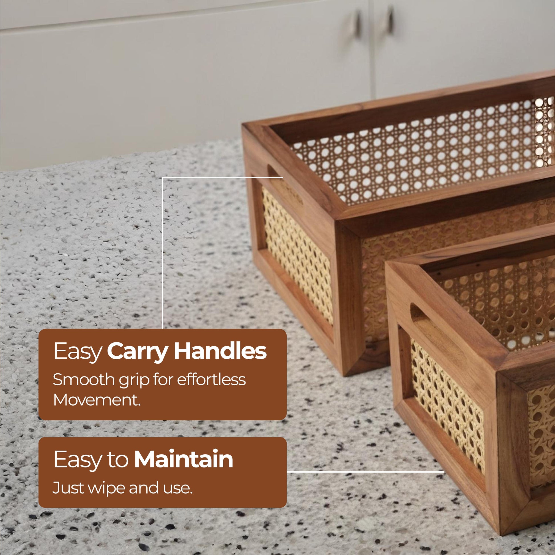 Handcrafted Excellence : Every basket is carefully crafted with finely woven rattan and strong teak wood framing, ensuring superior durability