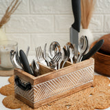 Elevate your home decor with this exquisite wooden storage box. Crafted from high-quality wood, it boasts a rustic charm with its intricate geometric pattern etched on the sides. The spacious compartments offer ample space to organise your essentials neatly, while the sturdy construction ensures durability. With its timeless design and practical functionality, this storage box is a versatile addition to any room, seamlessly blending style and utility.